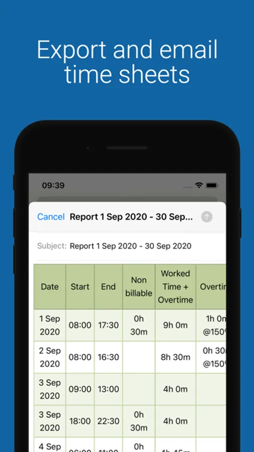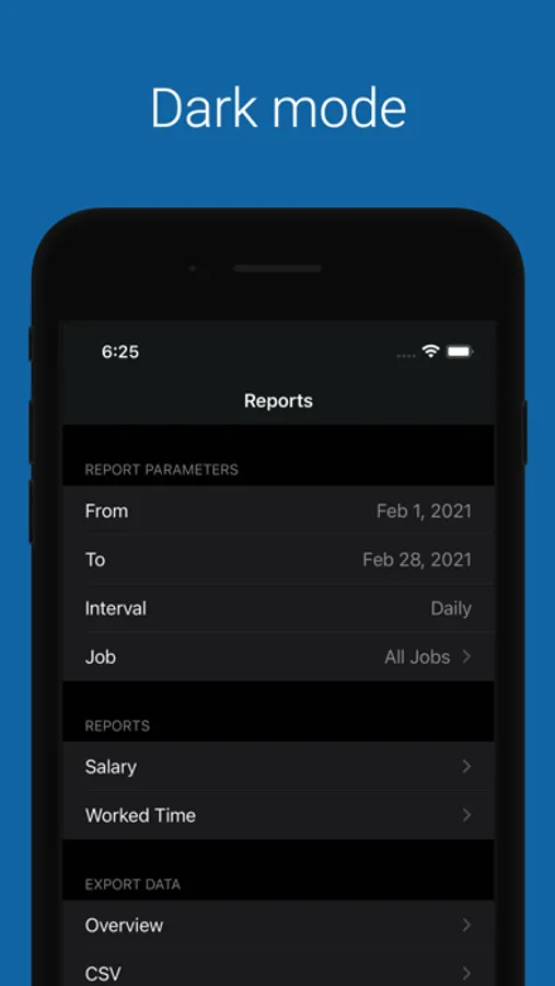 Keep a watchful eye on your time and salary by easily generating daily or monthly reports covering any period of time, giving you an overview of earnings and worked hours. Export for any period of time an overview of all work & earnings details to your email account for archiving or further analysis.