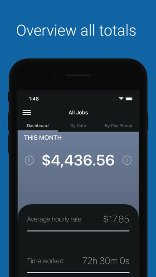 • Automatically calculate total earnings since the beginning of the workday, month, or year.