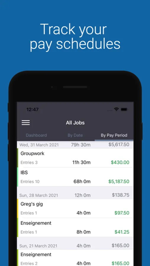 Track your tasks and projects and how much you earned for it. See exactly where your time went and export detailed timesheets directly to your email. Salarybook makes it easy to track your working hours, overtime and earnings to help bring your productivity to new levels.