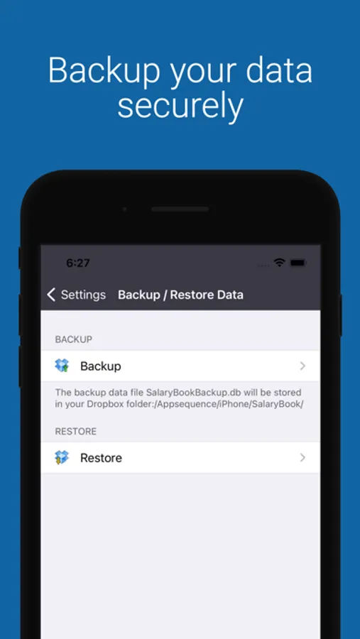 • Backup and keep your data safe and restore it later through your Dropbox account.