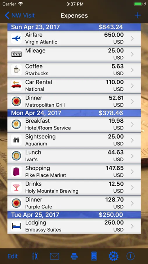 - Foreign expenses displayed in home currency
