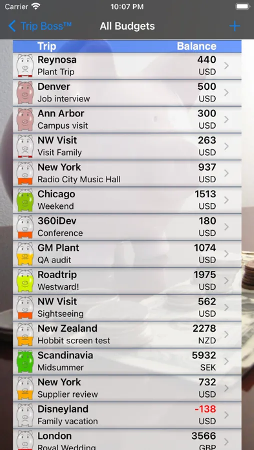 - Review all Trip Budgets' status at a glance