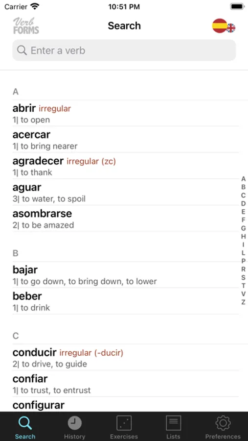 • Create lists of verbs you want to learn in an easy and comfortable way.