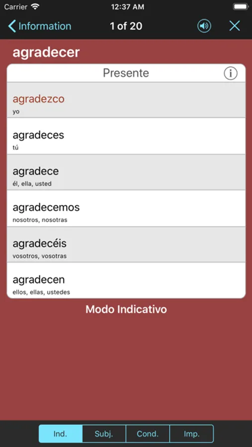 VerbForms Español little is the easiest way to learn the spanish verbs and their conjugation.