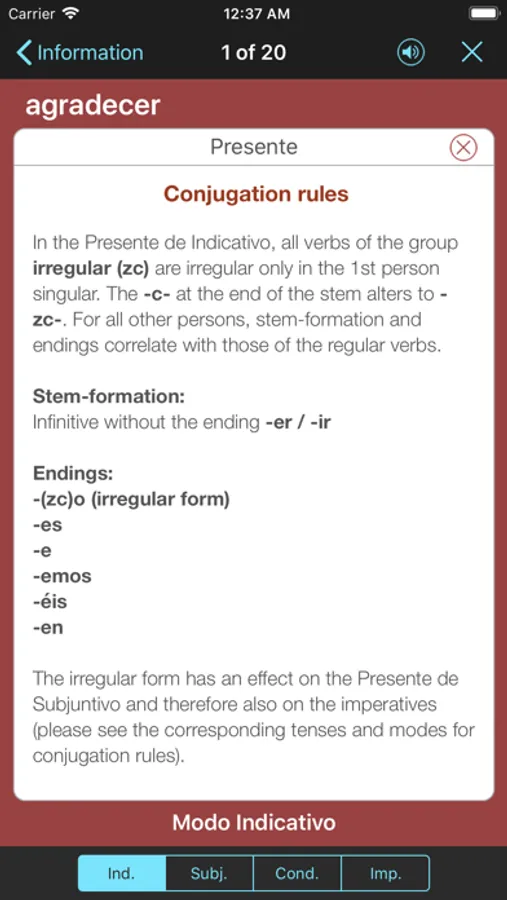 • Enjoy learning the conjugation with the configurable multiple choice, flashcard and written exercises.