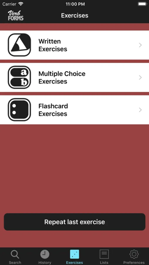 • Automatic error tracking by error lists helps you to keep learning progress under control. Once you successfully practiced a verb it will be removed from the error list.