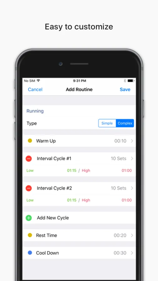- Customizable sets, high/low intensity interval and rest for your own need