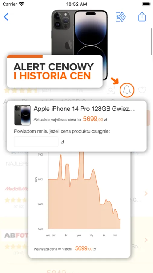 Śledź historię cen interesujących Cię artykułów i sprawdzaj, jak zmieniała się w ciągu ostatnich 6 miesięcy. Nie chcesz przegapić promocji? Ustaw alert cenowy, dzięki któremu otrzymasz powiadomienie, gdy wybrana cena zostanie osiągnięta.