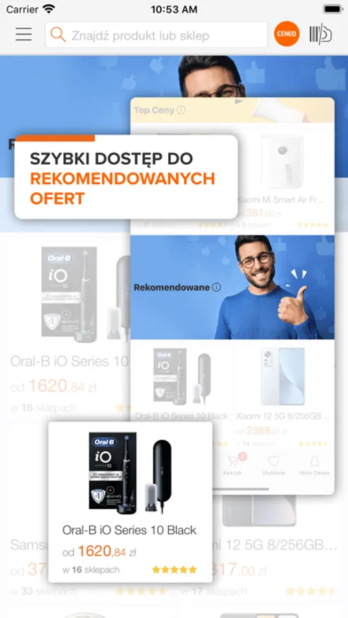 Z aplikacją Ceneo już nigdy nie przepłacisz na zakupach. Porównuj ceny w sklepach online i złóż zamówienie tam, gdzie produkt jest dostępny najtaniej.