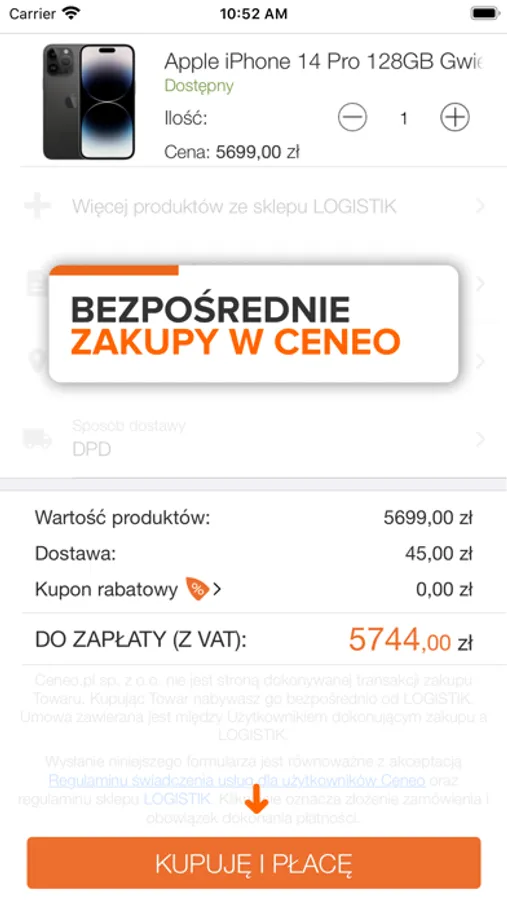 Skorzystaj z opcji Kup teraz, wybierz najdogodniejszy sposób dostawy i rodzaj płatności oraz użyj jednego z dostępnych kuponów rabatowych, aby zaoszczędzić jeszcze więcej pieniędzy na zakupach.