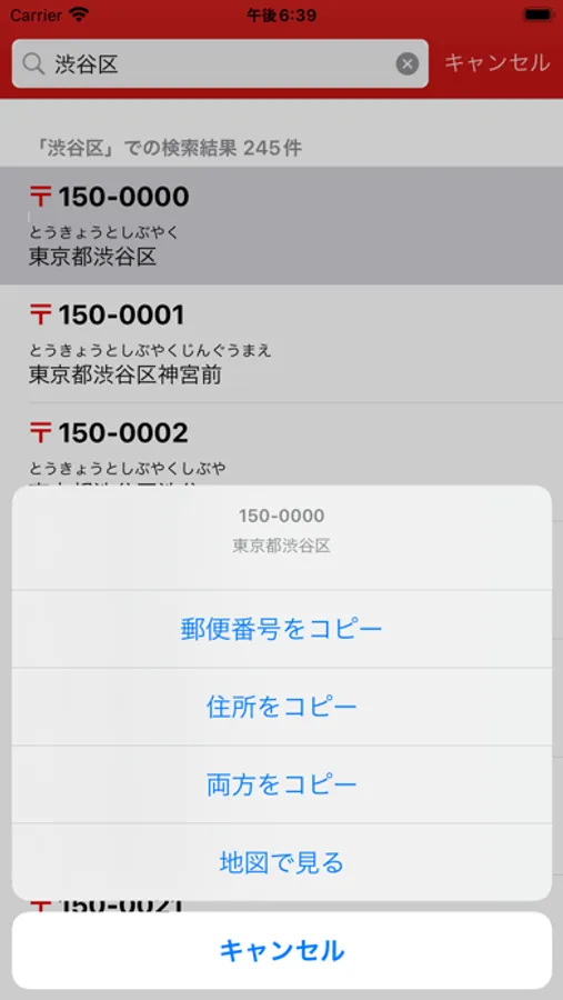 7桁までの数字のみを入力し検索した場合は、郵便番号からの検索、それ以外の場合は、住所から検索を行います。