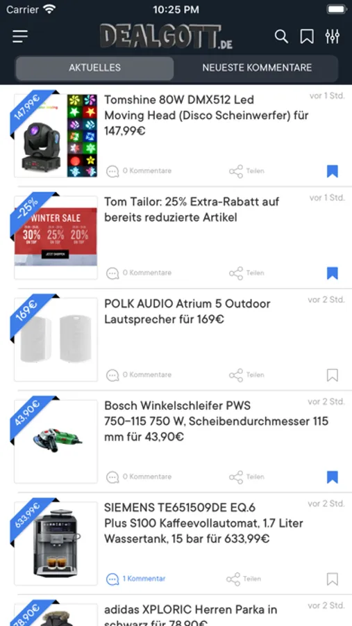 Täglich erwarten dich um die 30-50 besten Angebote aus dem Internet sowie manchmal auch Offline-Schnäppchen.