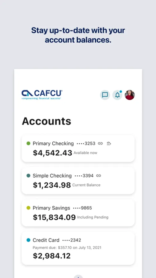 At Corporate America Family Credit Union, we're dedicated to providing the tools, resources and expertise that will empower you to succeed. Our mobile app offers a secure and seamless user experience across devices allowing you to: