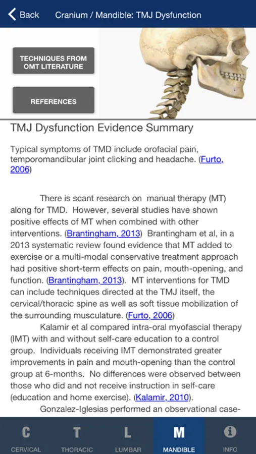MOBILE OMT for the SPINE is a powerful clinical reference and teaching tool for any student, clinician or educator involved in the practice or the teaching of manipulative/manual therapy for musculoskeletal disorders. A comprehensive mobile companion providing manipulative techniques for the cervical, thoracic, and lumbar spine presented in the context of best current evidence for use in treating spine disorders. Step by step written instructions, high-quality video demonstration with audio, indications for use, and evidence to support each technique.