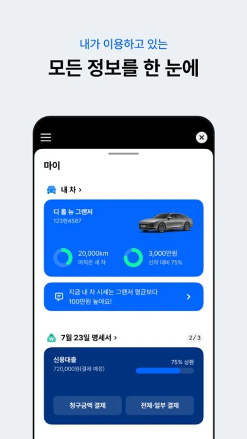 ■ 이용 중인 내 차, 명세서, 내 자산을 관리할 수 있는 '마이' 탭