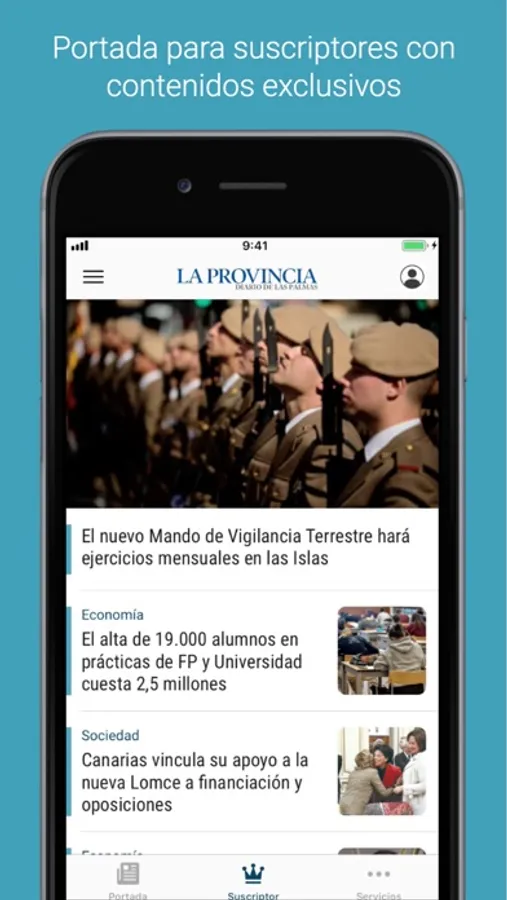 Además, en el apartado de noticias puedes acceder al contenido exclusivo para Suscriptores. De esta manera, tanto en el móvil como la edición web disfrutarás sin ningún tipo de limitación de los reportajes, entrevistas,exclusivas locales y artículos de opinión de La Provincia.