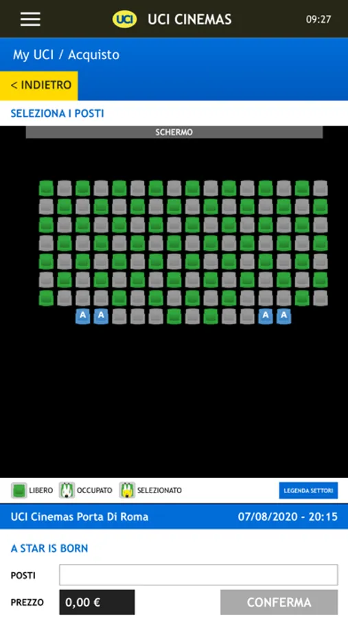 Potrai scegliere comodamente dalla mappa i tuoi posti e decidere se prenotarli per il ritiro al botteghino con almeno 30 minuti di anticipo, oppure acquistarli con carta di credito o cinecard e ritirarli direttamente ai punti self service risparmiando tempo.