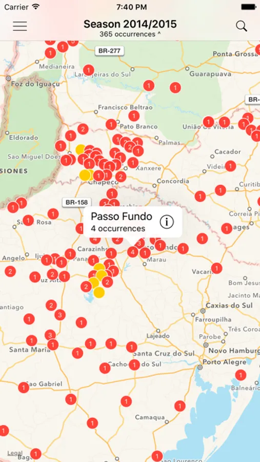 Through real-time dispersion maps, the app allows for the tracking of the disease during the growing seasons along with searching for cities where occurrences have been registered and access to detailed information.