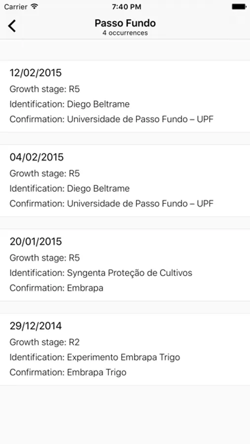 The Consórcio Antiferrugem mobile app has the goal of monitoring the dispersion of Asian soybean rust in Brazil.