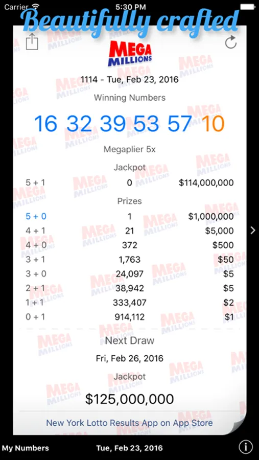 - Send Mega Millions results to your friends using iOS built-in sharing.