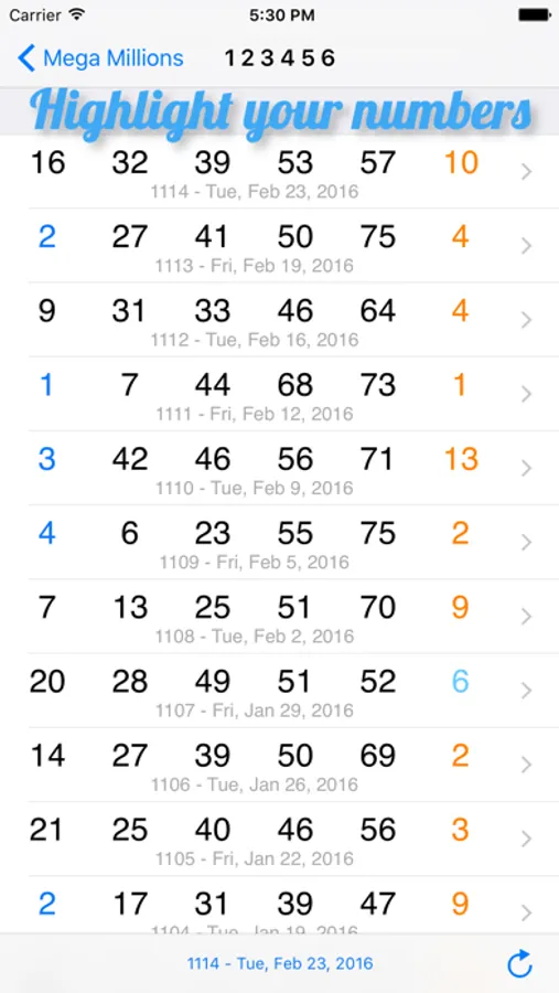 - View Mega Millions results with your favorite Mega Millions numbers highlighted.