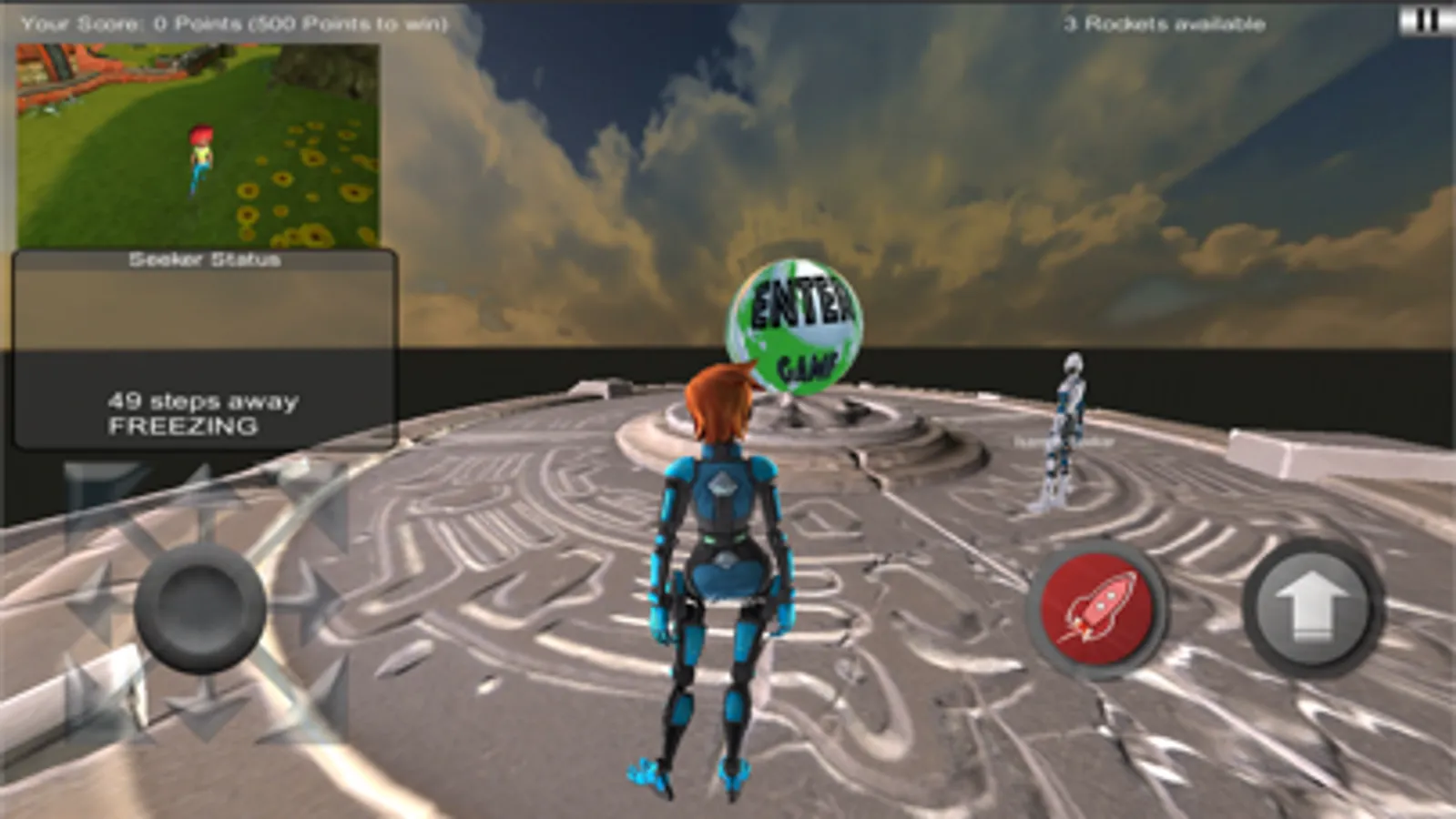 Move by pushing the 'Direction' joystick in any direction and jump using 'Jump' button. Swipe to turn the Seeker.