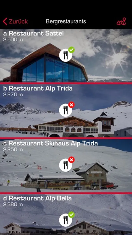 Expanded notifications of disturbances in the ski area in the Startscreen, skimapGPS and the Lift&Piste List. In addion more information can be found in the detail list.