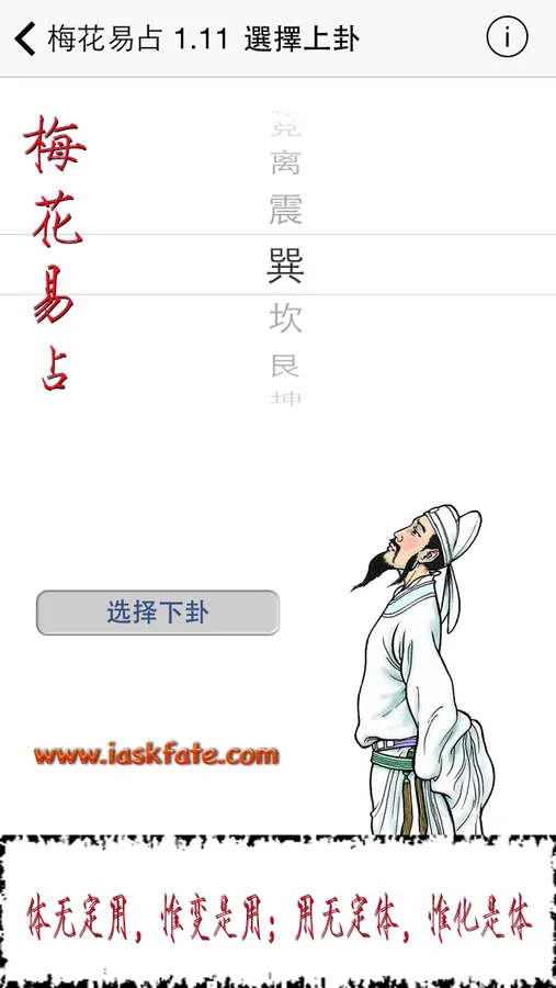 3: 集成了《白話易經》,點擊卦圖,可以閱讀對應的六十四卦卦辭,爻辭,邊預測邊學習《易經》思想。