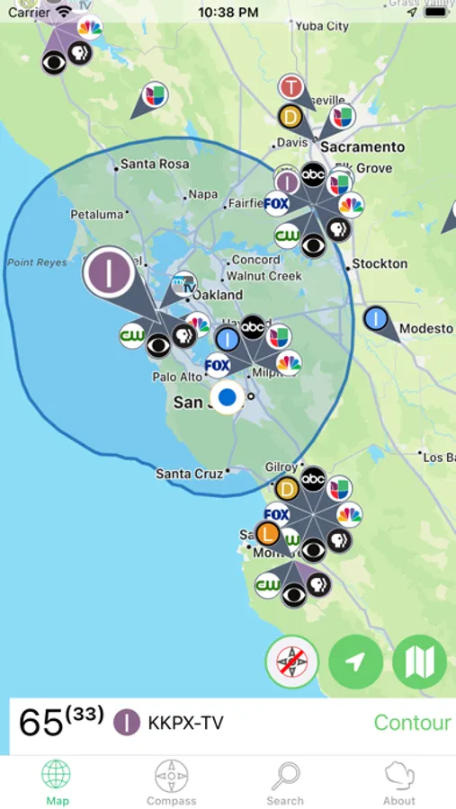 There is an alternate compass tab which shows the direction of stations within a 45 mile radius—given enough screen space—just look over your phone to see which way to point your antenna.
