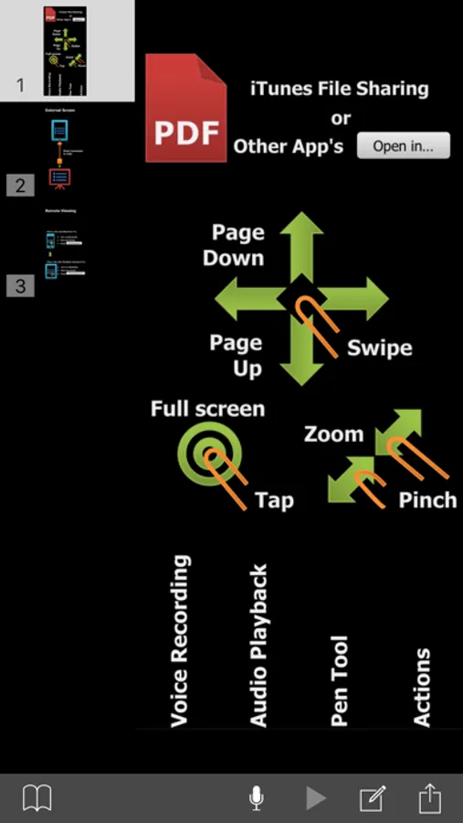 1. Quick display of PDF files; select pages by simply tapping the page thumbnail view
