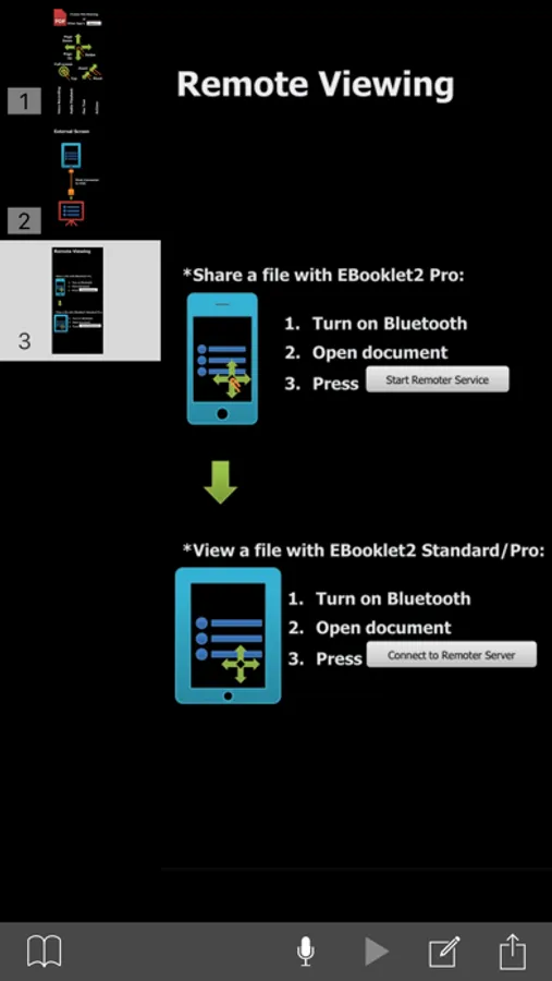 EBooklet2 Pro allows you to display files on other iPads and iPhones. The actions on the host