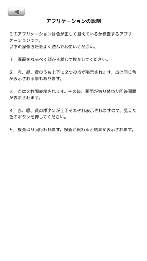 【使用上の注意】 このアプリケーションは色覚の正常・異常を断定するものではありません。 正確な診断は眼科医の診察をお受けください。