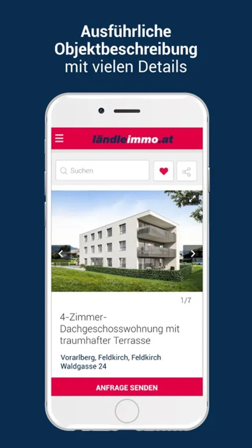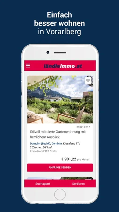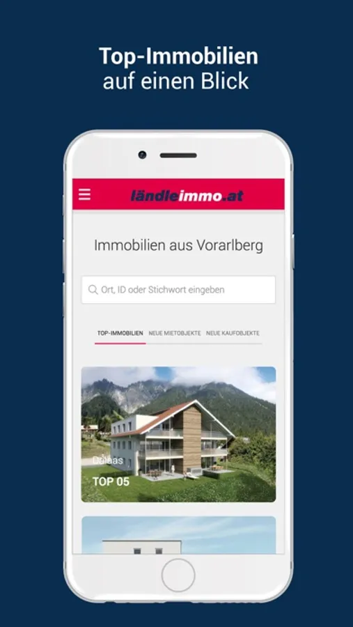 Die neue ländleimmo.at App unterstützt Ihre Suche nach einem neuen Zuhause oder einem neuen Standort für Ihr Unternehmen optimal. Denn Sie ist immer und überall dabei - und unglaublich schnell und unkompliziert. Konzipiert für die mobile Immobiliensuche.