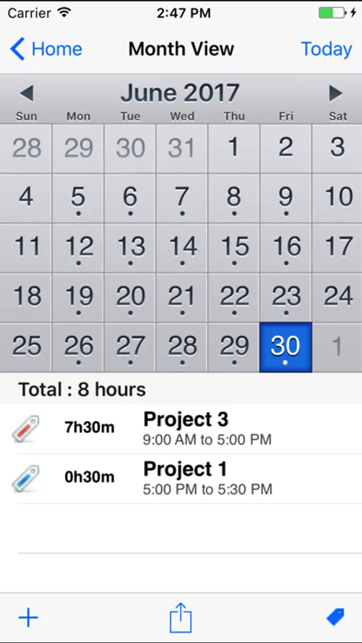 - See the total hours worked in a month view