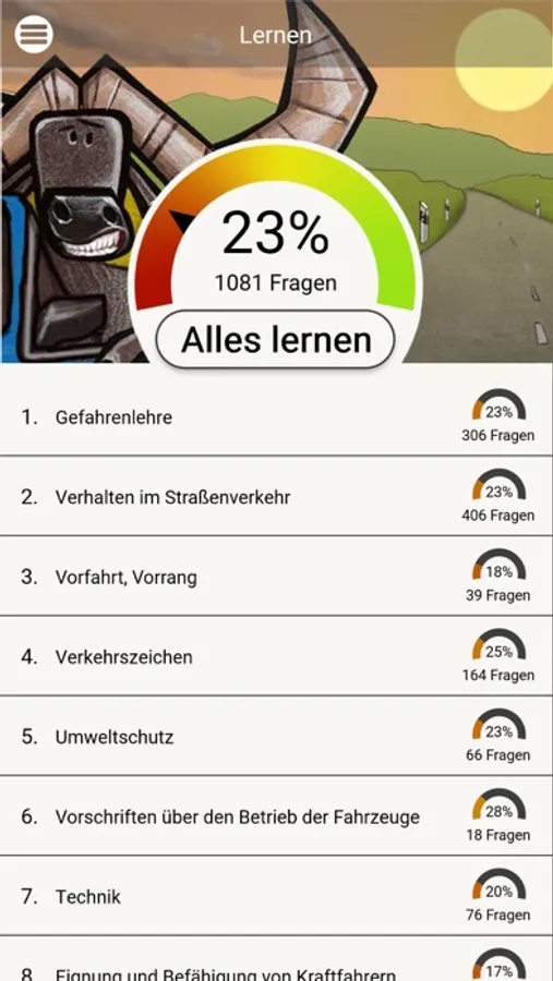 Mit dieser App lernst du auf einfache Weise effizient alle Fragen für deinen Führerschein.