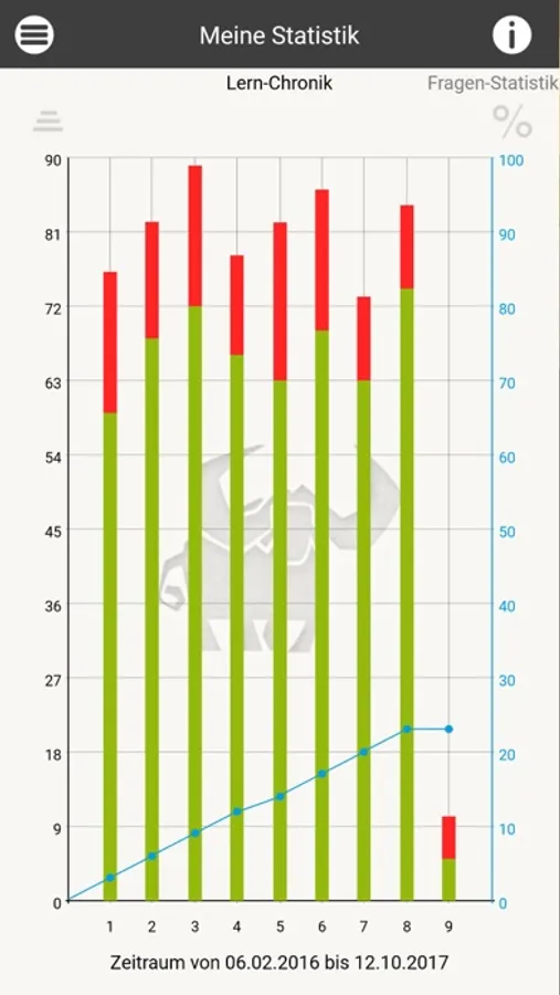 Wie in einem intelligentem Karteikartensystem wiederholt die App alle offiziellen Prüfungsfragen. Ist eine Frage mehrfach richtig beantwortet kommt sie nur noch selten, so lernt man nur noch die Fragen die man noch nicht kann. Durch das Lern-O-Meter hat man jederzeit einen Überblick über den eigenen Wissensstand.