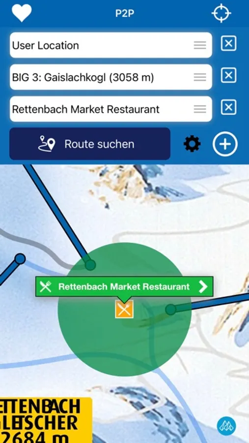 Navigation with the P2P Mountain Navigator: How do I get from A to B via C?