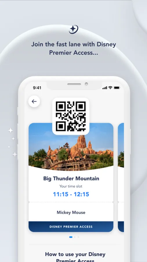 • See your upcoming and past Disney Premier Access time slots and access your QR codes in "My Plans".