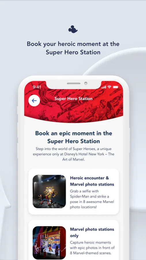 • Reserve your spot at the Super Hero Station (for Guests staying at Disney Hotel New York – The Art of Marvel).