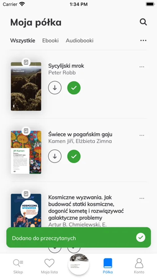 - uzyskujesz dostęp do swojej wirtualnej półki, z poziomu której możesz czytać ebooki oraz słuchać audiobooków, jak chcesz i kiedy chcesz, także w trybie offline,