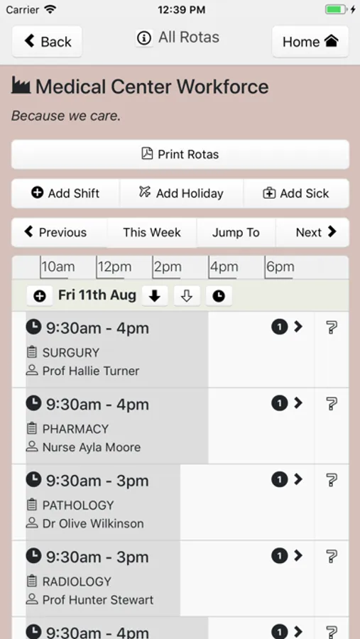 Gone are the days of outdated pen and paper or excel spreadsheet methods - with Rotaville Rota Software, the rota is online and accessible from any computer or device. Plus, our app allows for the printing of PDF copies of your rota directly from your iPhone or iPad.
