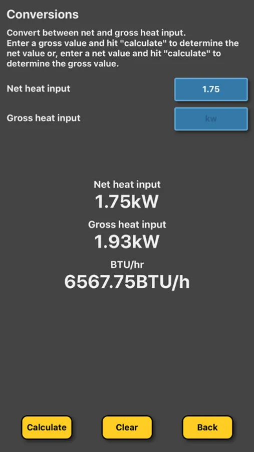 We have also included a free Celsius to Fahrenheit converter and a gross / net kW/BTU converter.