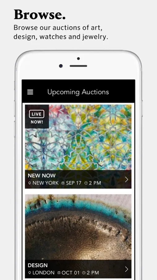 Now, participating in our auctions is easier than ever. The Phillips app allows you to browse upcoming sales, track your favorite lots and place bids in our live auctions from anywhere on your iOS devices. Welcome to the first truly mobile auction salesroom.