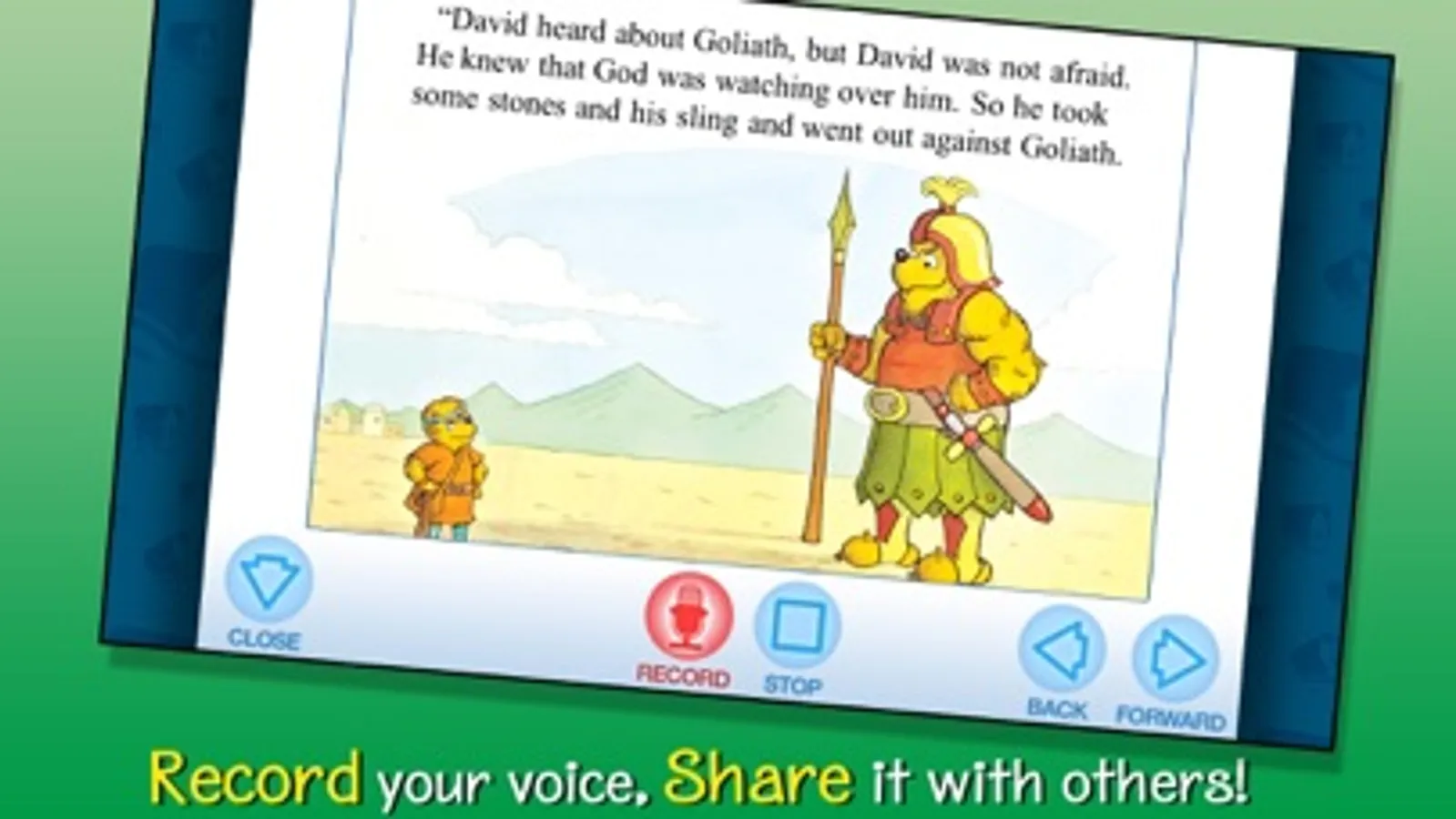 Join the Berenstain Bears in this interactive Christian book app as the Bear cubs wonder if they can be as brave as David when he fought Goliath! Explore pictures, learn new vocabulary, and personalize the story with your own narration. Find out how the cubs learn that God is always with them, just as he was with David!