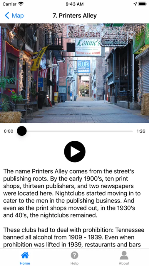 Each tour includes maps, directions, photos, text, and narration in English. Once downloaded, it's self-contained on your device - no internet connection needed.