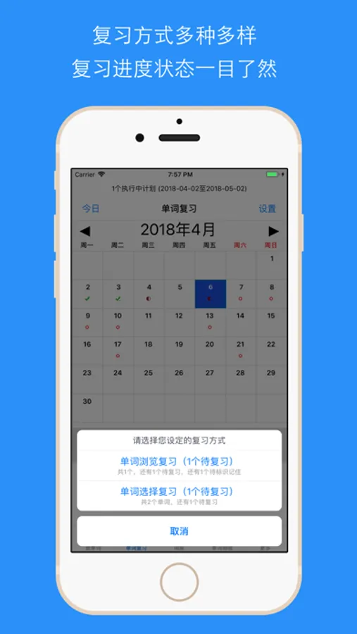 6. According to the memory rules and the review plan, only the words to be reviewed are reminded on the date of the review. Effective review does not cost you a lot of time.
