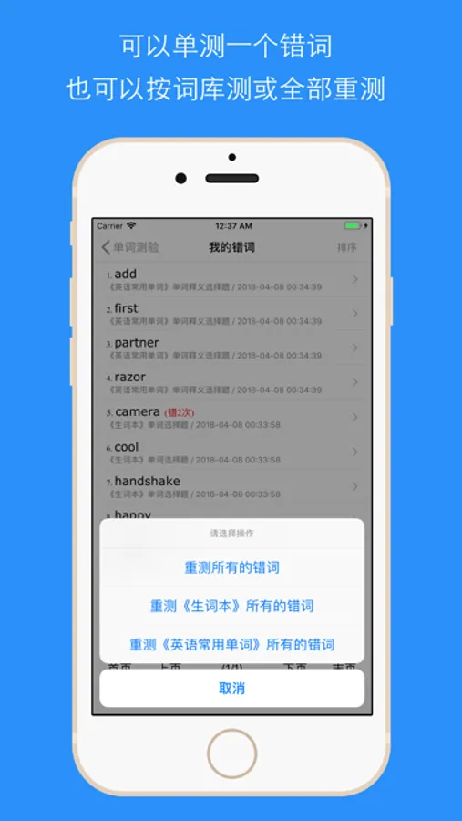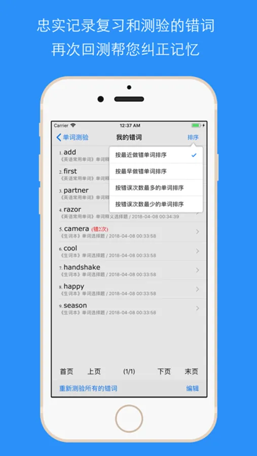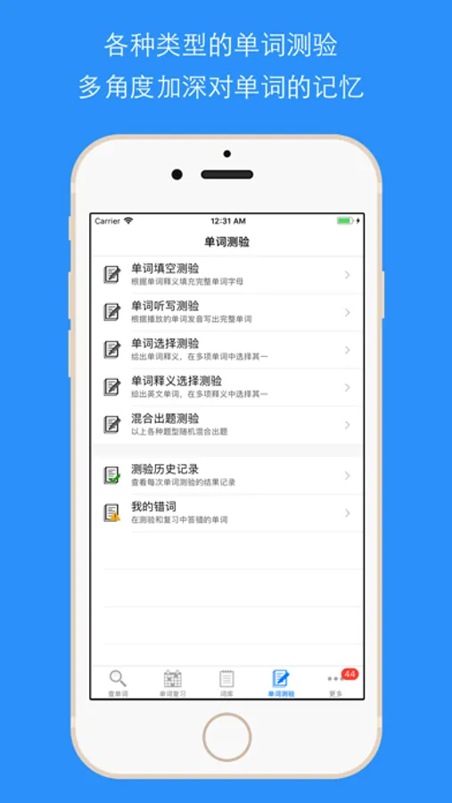 7. Various types of word tests will help you deepen your understanding and memory of words. Error word review function can help you to correct and deepen your memory.