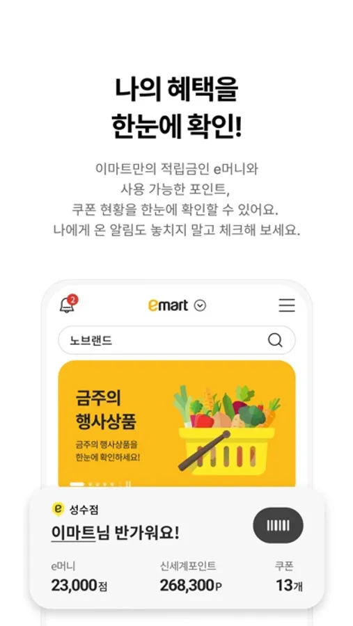 이마트앱은 이마트매장에서 쇼핑하는 분들의 필수 앱입니다.