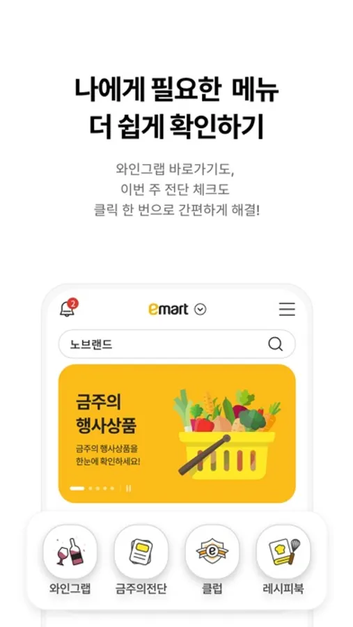 쇼핑 전 이마트앱에서 이번주 전단을 확인하고, 내가 가입한 클럽 혜택을 체크하세요.