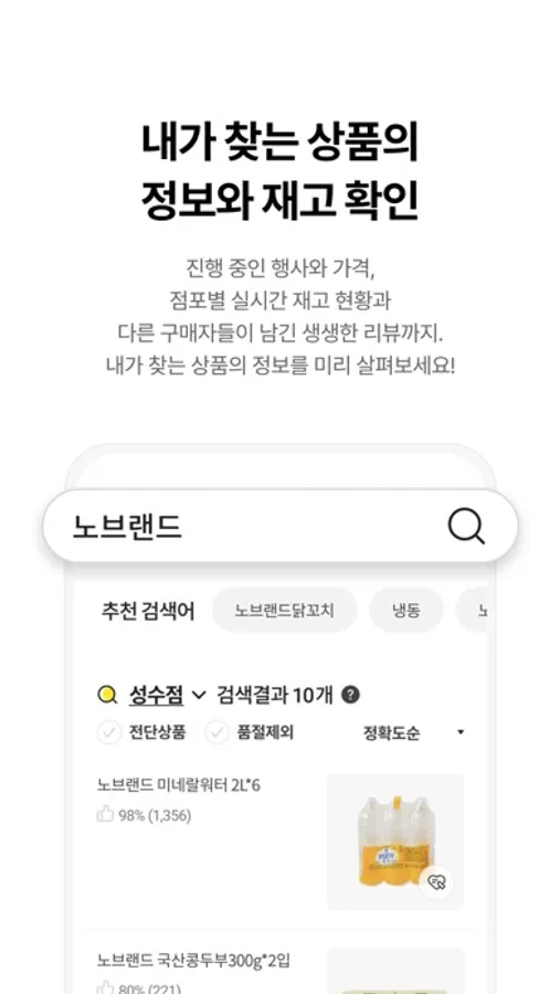 진행 중인 행사와 가격, 점포별 실시간 재고 현황과 다른 구매자들이 남긴 생생한 리뷰까지.